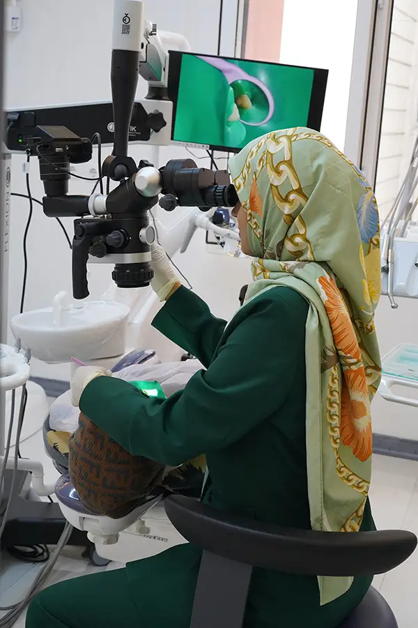 درمان ریشه از ظریفترین و دقیقترین درمانهای دندانپزشکی است. بسیاری از چالشهای درمانی، مانند کانالهای پنهان، کلسیفیکاسیونها، انحنای زیاد ریشه یا باقیماندن بخشهایی از دبری و بافت نکروتیک، تنها زمانی قابل مدیریت هستند که درمان با بزرگنمایی و نور مناسب انجام شود. در این مرکز تمام درمانهای اندودنتیک تحت میکروسکوپ دندانپزشکی تخصصی انجام میشود؛ ابزاری که امروزه استاندارد طلایی در درمانهای پیشرفته اندودنتیک محسوب میشود. استفاده از میکروسکوپ امکان مشاهده جزئیاتی را فراهم میکند که با چشم غیرمسلح قابل دیدن نیستند. بهویژه در دندانهایی که سابقه درمان قبلی، کانالهای میسینگ یا کلسیفیه دارند، میکروسکوپ به ما اجازه میدهد ورودی کانالها، انشعابات ریز و مسیرهای پیچیده را با دقتی بسیار بالا شناسایی کنیم. بسیاری از اقداماتی که بدون بزرگنمایی ریسک بالایی دارند،مانند خارج کردن فایل شکسته، مدیریت پرفوریشن، اصلاح ledge یا یافتن کانالهای پنهان،با میکروسکوپ بهصورت ایمنتر و قابلاعتماد انجام میشوند. میکروسکوپ همچنین کیفیت شستشو و پرکردن کانال را افزایش میدهد. هنگامی که همه مراحل با دید مستقیم و نور کوآکسیال انجام میشود، کنترل اپکسیفیکیشن، حذف دبری و obturation نهایی بسیار دقیقتر صورت میگیرد. همین دقت بالا احتمال نشت، باقیماندن باکتریها یا شکست درمان در آینده را کاهش میدهد. به این ترتیب، میکروسکوپ در مطب ما تنها یک ابزار کمکی نیست؛ بلکه بخشی جداییناپذیر از ارائه درمانی ایمن، پیشرفته و مبتنی بر استانداردهای روز دنیاست.