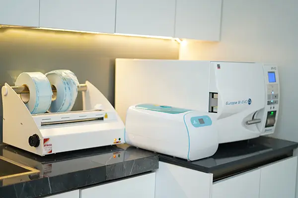 از اولتراسونیک کلینر تا اتوکلاو کلاس B درمان ریشه زمانی واقعاً موفق است که علاوه بر دقت تکنیکی، در محیطی کاملاً ایمن و استریل انجام شود. به همین دلیل در مطب ما پروتکلهای کنترل عفونت با تجهیزات پیشرفته و استانداردهای بینالمللی اجرا میشود. روند استریلیزاسیون ابزار از همان لحظه خروج از دهان بیمار آغاز میگردد. ابزارها ابتدا در محلولهای آنزیمی قرار میگیرند تا هرگونه آلودگی اولیه تجزیه شود. سپس وارد مرحلهای میشوند که مهمترین قسمت است: شستشو با دستگاه اولتراسونیک کلینر. اولتراسونیک کلینر با استفاده از امواج کاویتاسیون، ذرات آلودگی را از ریزترین شیارهای ابزار خارج میکند؛ کاری که با شستشوی دستی به هیچوجه قابل انجام نیست. این مرحله برای ابزارهای ظریف اندودنتیک اهمیت حیاتی دارد زیرا پیچیدگی و ظرافتشان نیازمند پاکسازی عمیق و دقیق است. پس از پاکسازی کامل، ابزارها در پکهای استریل با نشانگرهای شیمیایی بستهبندی میشوند و وارد اتوکلاو کلاس B میگردند؛ دستگاهی که کاملترین و قدرتمندترین نوع اتوکلاو در مطبهای تخصصی محسوب میشود. اتوکلاو کلاس B با ایجاد وکیوم قدرتمند، بخار را تا عمیقترین بخش ابزارهای توخالی و ظریف وارد میکند و استریل کامل را تضمین میکند. برای اطمینان از عملکرد صحیح دستگاه، در مطب ما تستهای دورهای مانند تست اسپور و تست فشار و دما بهطور منظم انجام میشود. به این ترتیب، استریلیزاسیون ابزار در مطب ما تنها یک مرحله ساده نیست، بلکه یک سیستم چندلایه، دقیق و استاندارد است که هدف آن ایجاد بیشترین ایمنی و اطمینان خاطر برای بیماران است.